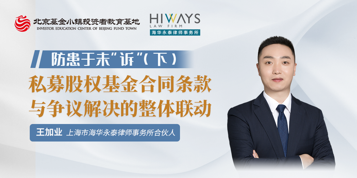 9月18日,北京基金小镇与上海市海华永泰律师事务所共同举办“防患于未‘诉’(下):私募股权基金合同条款与争议解决的整体联动”主题分享会,将深入私募股权基金合同条款,剖析适当性、冷静期、封闭运作、集体决策机制等基金合同条款对潜在争议解决的影响,揭示如何通过精密的条款设计减少潜在争议,保障交易各方利益。