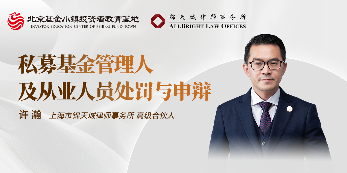为进一步提升私募管理人的合规意识和水平,北京基金小镇与上海市锦天城律师事务所将于9月25日举办“私募基金管理人及从业人员处罚与申辩”主题分享会。该所高级合伙人许瀚律师将基于对数千份处罚文件的梳理和提炼,系统剖析常见合规风险情形,厘清行政处罚与纪律处分的区别,结合实际案例总结处罚申辩的要点和主要误区,探讨管理人应如何有效开展整改以及在事前、事中和事后的风险防范。