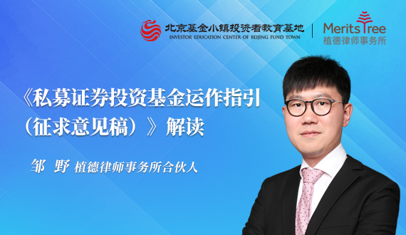 5月10日,北京基金小镇联合植德律师事务所共同举办“《私募证券投资基金运作指引(征求意见稿)》解读”分享会,邹野律师将结合其长期服务公募基金公司、私募证券基金管理人的经验进行分享。