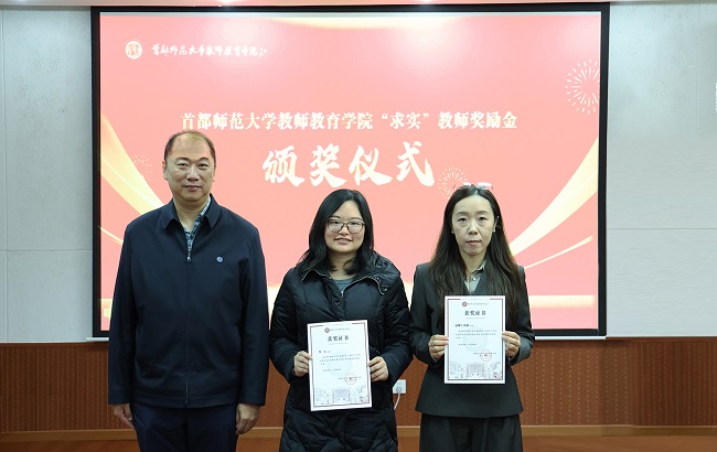 10月16日下午,首都师范大学教师教育学院的多位优秀青年教师获颁北京基金小镇“求实”教师奖励金,以表彰他们在教育科研领域做出的突出贡献,并激励更多教育工作者追求卓越、勇于创新。 首都师范大学党委常委、副校长韩继华出席并为获奖教师颁奖。