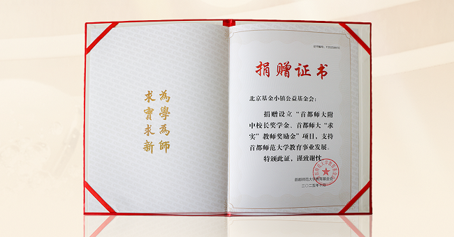 公益有回响,善意终抵达。10月25日,首都师范大学向北京基金小镇公益基金会颁发捐赠证书,致谢基金会在支持教育事业中所作的贡献。这份认可,与我们刚刚获得的4A荣誉交相辉映,成为这个秋天最暖心的回响。