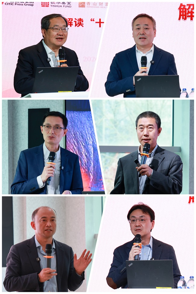 国家“十五五”规划专家委员会委员、中国人民大学经济学院原院长刘守英,万博新经济研究院院长滕泰,第十四届全国政协委员、中国社科院世经政所副所长张斌,清华大学中国经济与实践研究院首席研究员刘培林,中金公司资深董事总经理、首席策略师缪延亮,清华大学五道口金融学院中国保险与养老金融研究中心主任魏晨阳,围绕经济转型、城乡融合、消费提振、产业升级、收入分配、人民币国际化、资本市场发展等核心议题,分享了各自的研究成果。