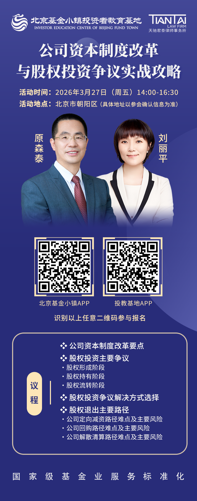 公司资本制度改革与股权投资争议实战攻——基金小镇